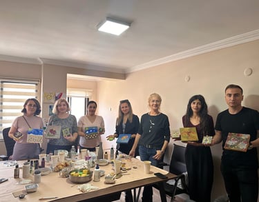 Mülteci ve göçmen kadınlar için katılımcı, etkileşimli ve kapsayıcı sanat temelli etkinlikler yoluyla sosyal bağları güçlendirmek.Hedef grubun iletişim ve sanatsal becerilerini geliştirmek: